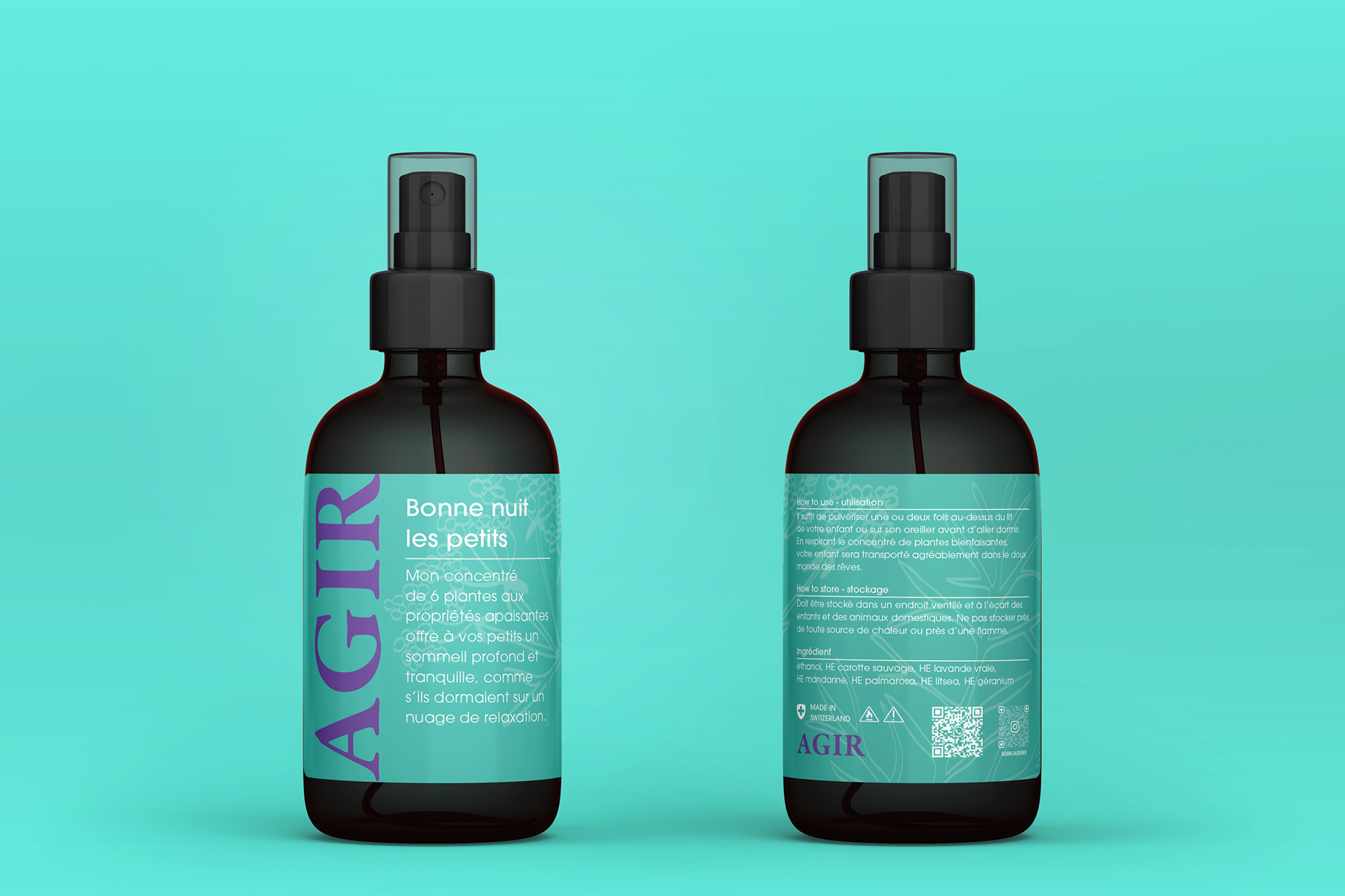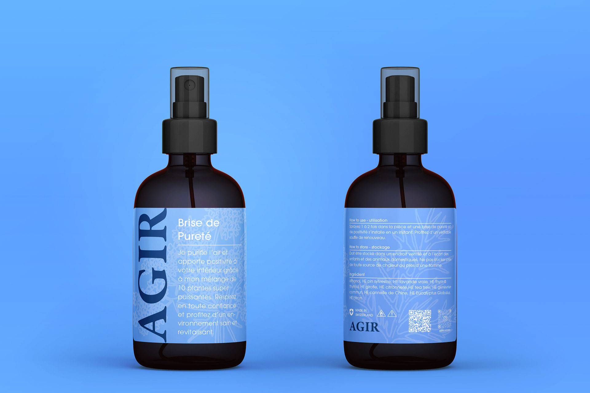 Brand identity framework for a cutting-edge Swiss essential oil company specializing in premium sprays designed to elevate well-being.